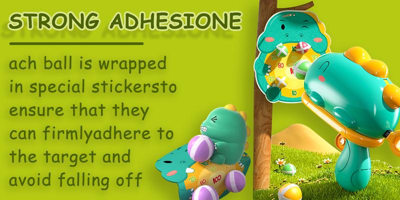 Outdoor Fun for Ages 3-6Perfect for young dinosaur enthusiasts, this engaging outdoor toy combines the thrill of shooting with colorful dinosaur designs.Unlike other dart board sets that come with only 6 balls, we offer 12 sticky balls, providing more playtime and less downtime spent retrieving them.Plus, the included dinosaur launcher adds an extra layer of excitement!Two Play OptionsThis dinosaur sticky ball dart board offers versatility with two ways to play.Kids can launch the dart balls using the dinosaur launcher or throw them by hand.It's ideal for play in various settings-indoors, outdoors, in the yard, or at the playground.With numbered targets on the dart mat, it's perfect for practicing aim and coordination.Simple and EnjoyableUsing the toy is easy: place a ball in the launcher, shake it, and pull the switch to send it flying! The sticky balls adhere firmly to the dart board, ensuring less frustration and more fun. This dinosaur-themed dart board is a fantastic gift for boys and girls ages 3-7, making it a top choice for both indoor and outdoor play!